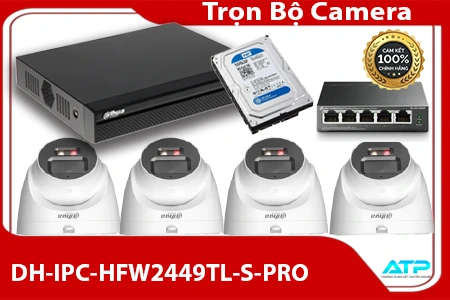 Bộ Camera Có Màu Ban Đêm Siêu Nét gồm 4 camera Dahua DH-IPC-HFW2449M-S-B-PRO độ phân giải 4MP, ghi hình rõ từng chi tiết. Hỗ trợ công nghệ Starlight giúp quan sát ban đêm có màu sống động